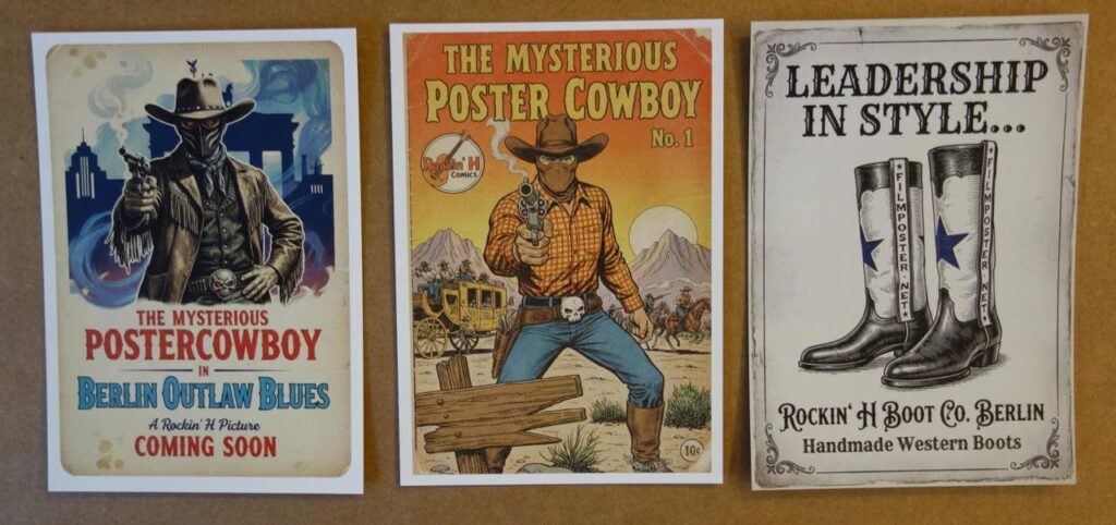 By Postercowboy on January 23, 2026For more than 20 years I have been printing give-away postcards, and if you ever ordered a poster from me you will have received one of them. In the past, they were usually based on vintage movie posters and they showed either the entire poster or sometime I used a partial image and played with it.
