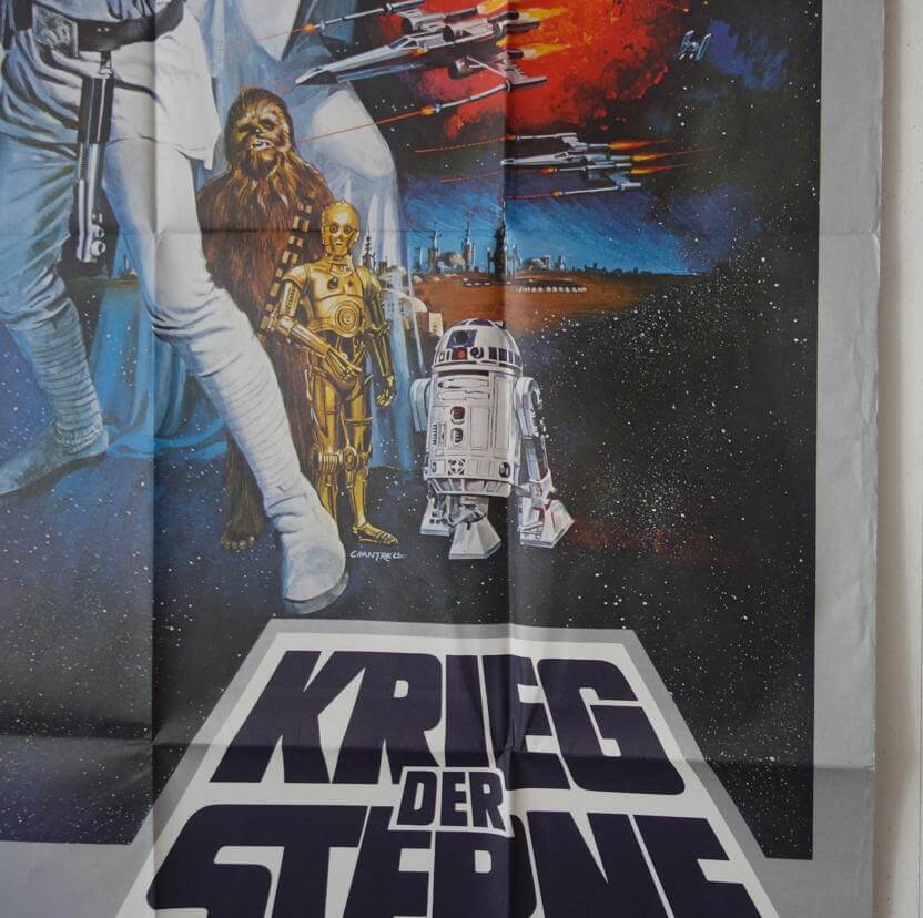 Originales deutsches A3-Filmplakat der Erstaufführung, B-Motiv mit Tom Chantrell Grafik. Der Film mit dem alles begann. Mit Mark Hamill, Harrison Ford, Regie George Lucas.