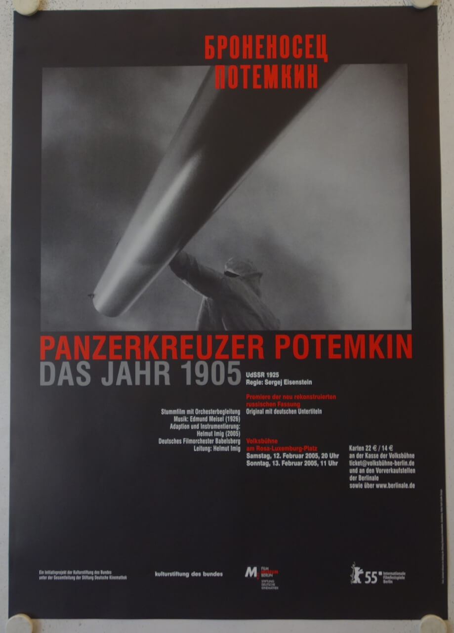 Original german movie poster for the premiere screening of the restaured russian version of Sergej Eisenstein's landmark classic, Volksbühne Berlin 2005.