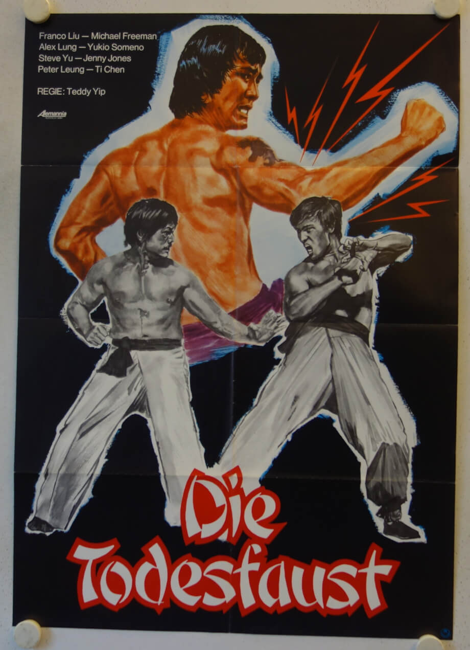 Original release german movie poster. Due to extreme violence, this film was banned on video in Germany. With Alex Tzi-Fei Lung, Steve Shung-Ying Yu, Jennie Jones, directed by Wing-Cho Yip.