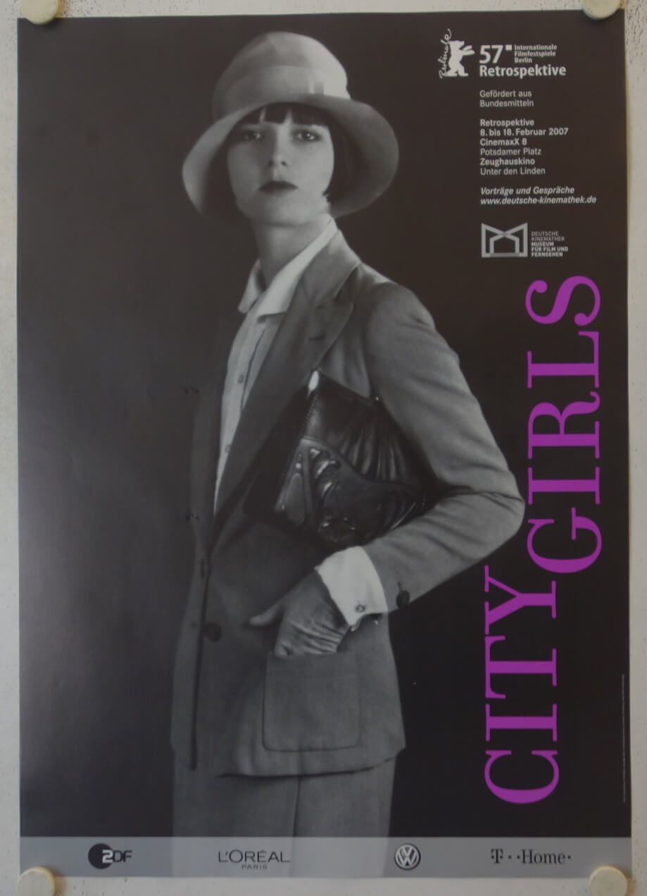 Original german film festival poster, Berlin Film Festival 2007. Image shows Louise Brooks on a portrait shot from the 1920s. Small indentions in center image, see detail photo.