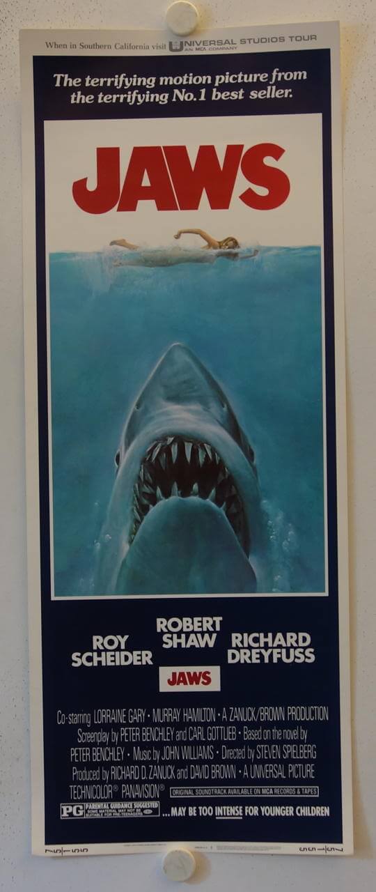 Original release US Insert movie poster. Unfolded an in outstanding condition. Beware of reprints, this one is 100% original. With Roy Scheider, Robert Shaw, directed by Steven Spielberg.