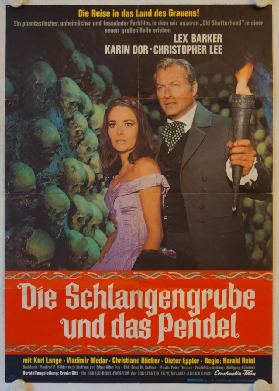 Original release german movie poster. With Lex Barker, Karin Dor, Christopher Lee, directed by Harald Reinl.