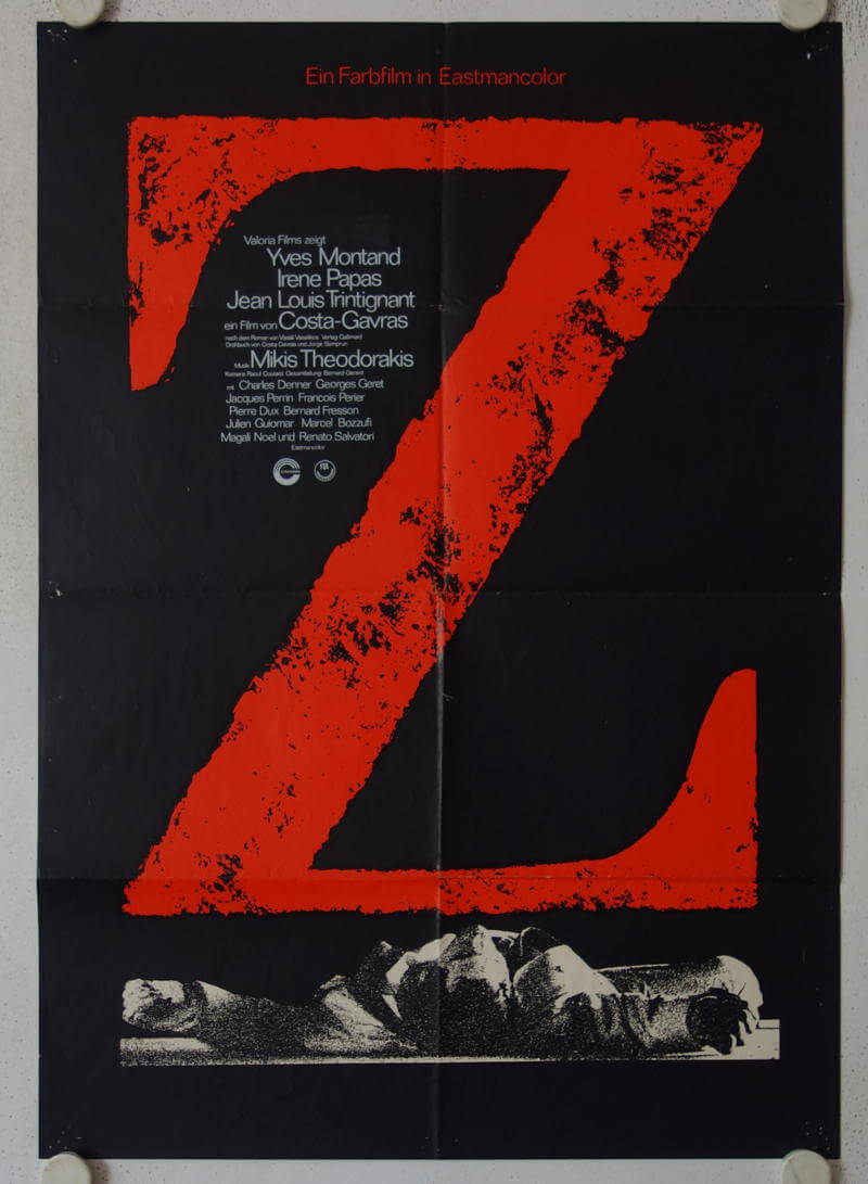 Original release german movie poster. With Yves Montand, Irene Papas, Jean-Louis Trintignant, directed by Costa-Gavras.
